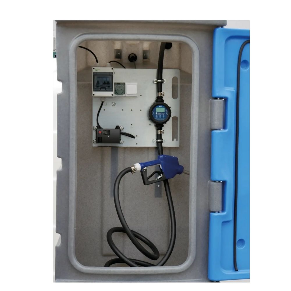 Grundausstattung: abschließbare Verteilbox (Schlüsselverschluss), AdBlue-Pumpe (Tauchpumpe 230 V / 50 Hz oder Membranpumpe), Abgabeschlauch ¾" (6 m), Saugschlauch (bei Membranpumpe), verschließbarer Einfüllstutzen im Innentank inkl. Entlüftungsventil, Automatik-Zapfpistole SENSOR-TECHNIK, digitaler zweifunktionaler Durchflussmesser (kalibrierbar). Optional: Wärmedämmung (Innentank oder Tank + Heizband), Edelstahl-Befüllleitung mit DDC-Schnellkupplung, DDC-Anschluss oben am Innentank, Abluft-/Absaugsystem, automatische Warmluftheizung für die Verteilbox, Schaltschrank/Steuerbox, Überfüllsicherung GOK BC2, geeichter ADAST-Zähler/Panel.